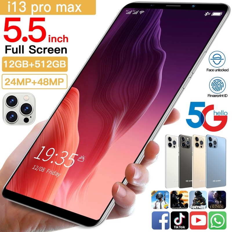 Smartphone Asli Baru I13 Pro Android 10.0 4G/5G HP Ponsel Murah 5.5 Inci HD Ponsel Layar Besar 8GB RAM+128GB ROM Dual SIM Dual Standby Ponsel Murah Gratis Pengiriman Smartphone murah